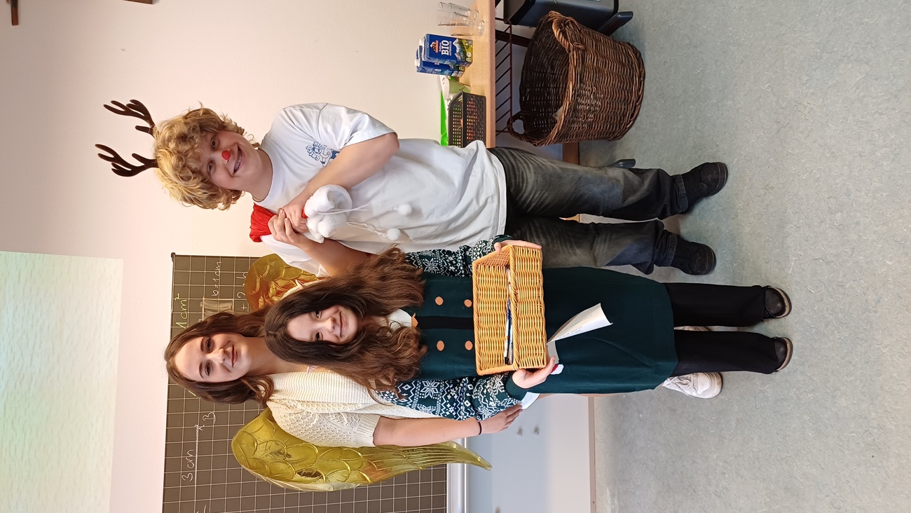 Am 5. Dezember besuchte der Heilige Nikolaus mit seinen Engeln Marlene und Wina die Diagnose- und Förderklassen (DFK) und die beiden Gruppen der Schulvorbereitenden Einrichtung (SVE). Die Kinder haben vorher Lieder eingeübt und sangen sie dann mit Freude dem Nikolaus vor. Aber nicht nur die Kinder erhielten Geschenke, sonder auch der Heilige Mann bekam welche, z. B. selbstgemalte Bilder...